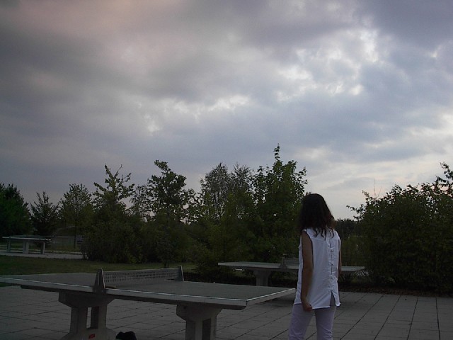 Annette alleine beim Tischtennis spielen